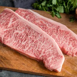 Exquisite A5 grade Japanese Wagyu beef, known for its intense marbling and buttery texture.